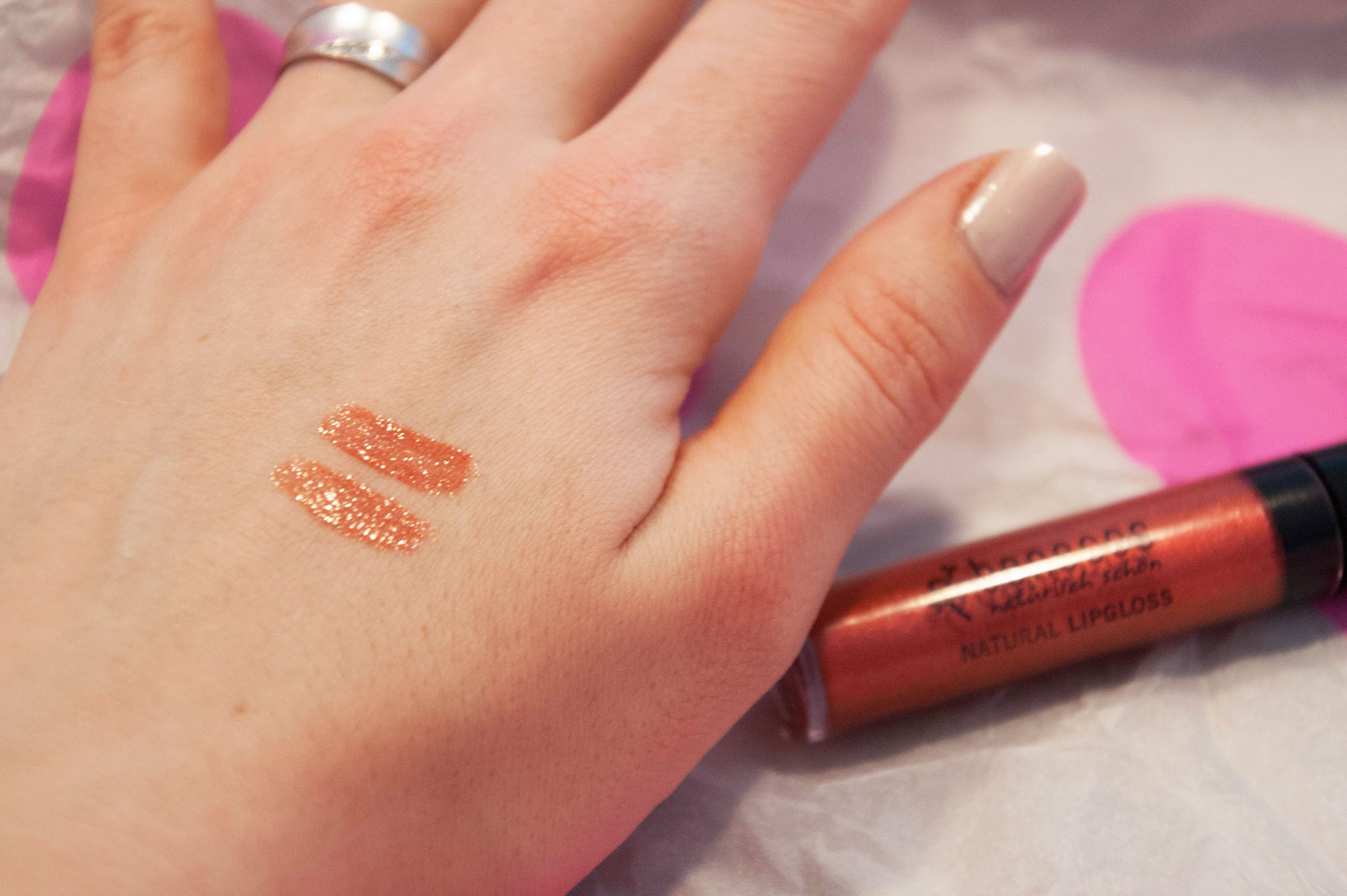 Das erste Swatchen des Lipglosses liess mein Herz höher schlagen. Genauso hatte ich mir die Farbe vorgestellt. Es ist ein warm schimmerndes Beerenrot, das nicht zu dunkel ist und einen Stich Koralle enthält. Ich bin begeistert und freue mich schon auf das Ausprobieren im Alltag.