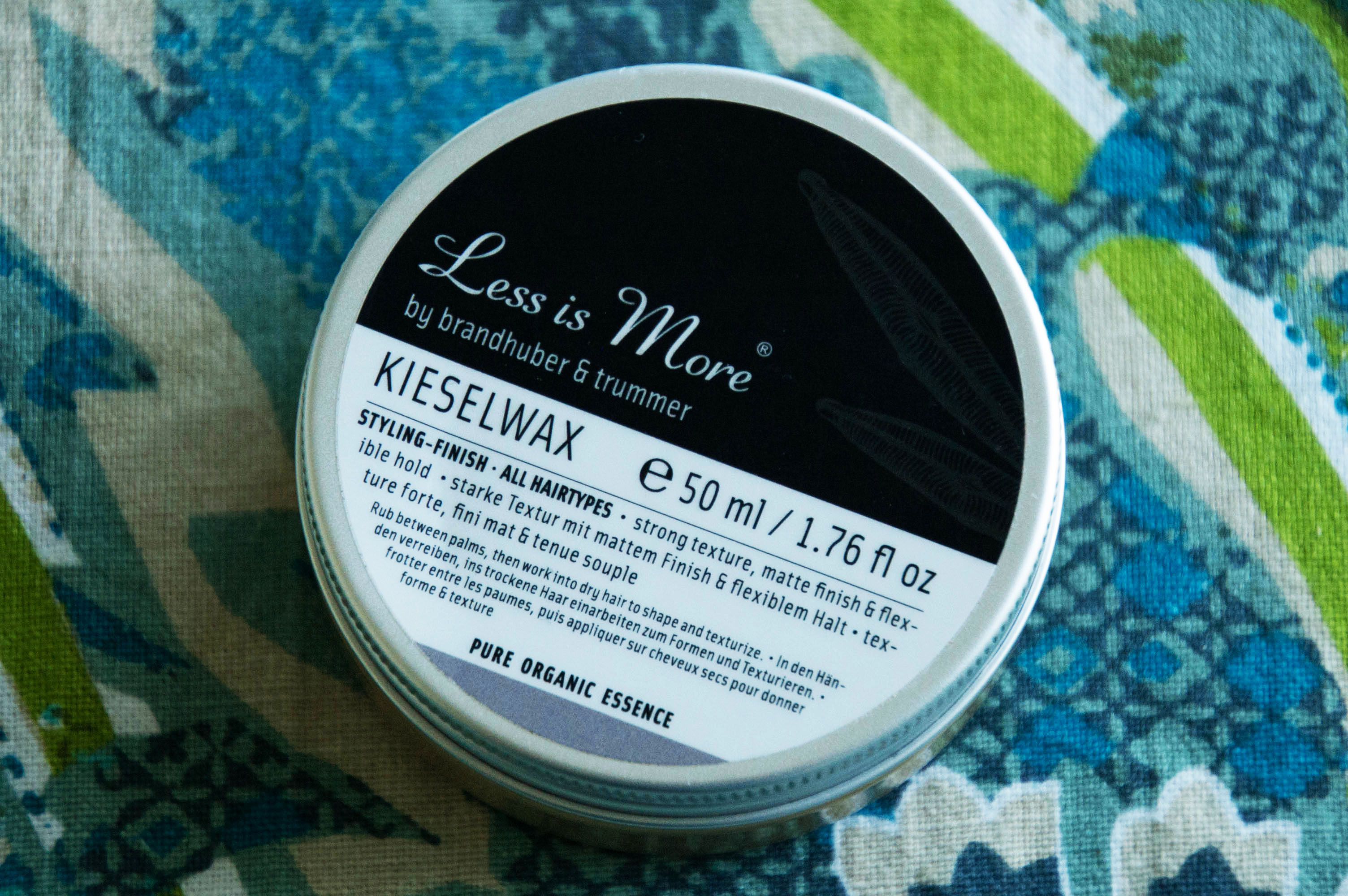 Edit: Was eventuell noch wichtig ist zu sagen: Das Kieselwax ist zwar eher im hochpreisigen Segment, aber auch sehr ergiebig. Monsieur Sonnensprossen nutzt es jetzt seit ca. zweieinhalb Monaten täglich und die Dose ist gerade erst halb leer.