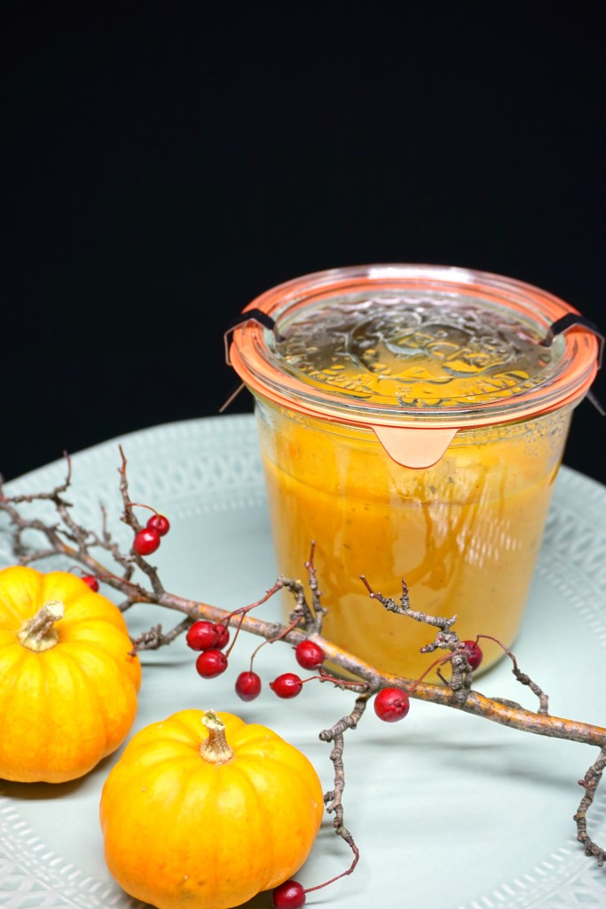 Auf dem Bild seht ihr eine eingeweckte Variante, die ich einer Freundin verschickt habe. Die Anleitung zum Einwecken habe ich hier gefunden und sie einfach mal ausprobiert. Ich finde es eine sehr coole Variante, um Kürbissuppe länger haltbar zu machen oder sie so zu verschenken. Man kann sie aber natürlich auch portionsweise einfrieren oder einfach gleich wegmampfen. Ich persönlich liebe es, wenn ich nach einem langen Tag abends heimkomme und mir einfach nur die Suppe warm machen muss. Aufgewärmt ist sie nämlich noch schmackhafter!